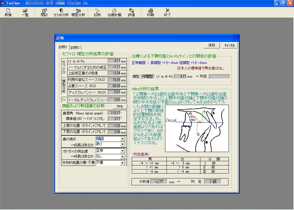 • セファロ・模型計測データより、Tip Edge に必要な診断や抜歯の判定を行います。