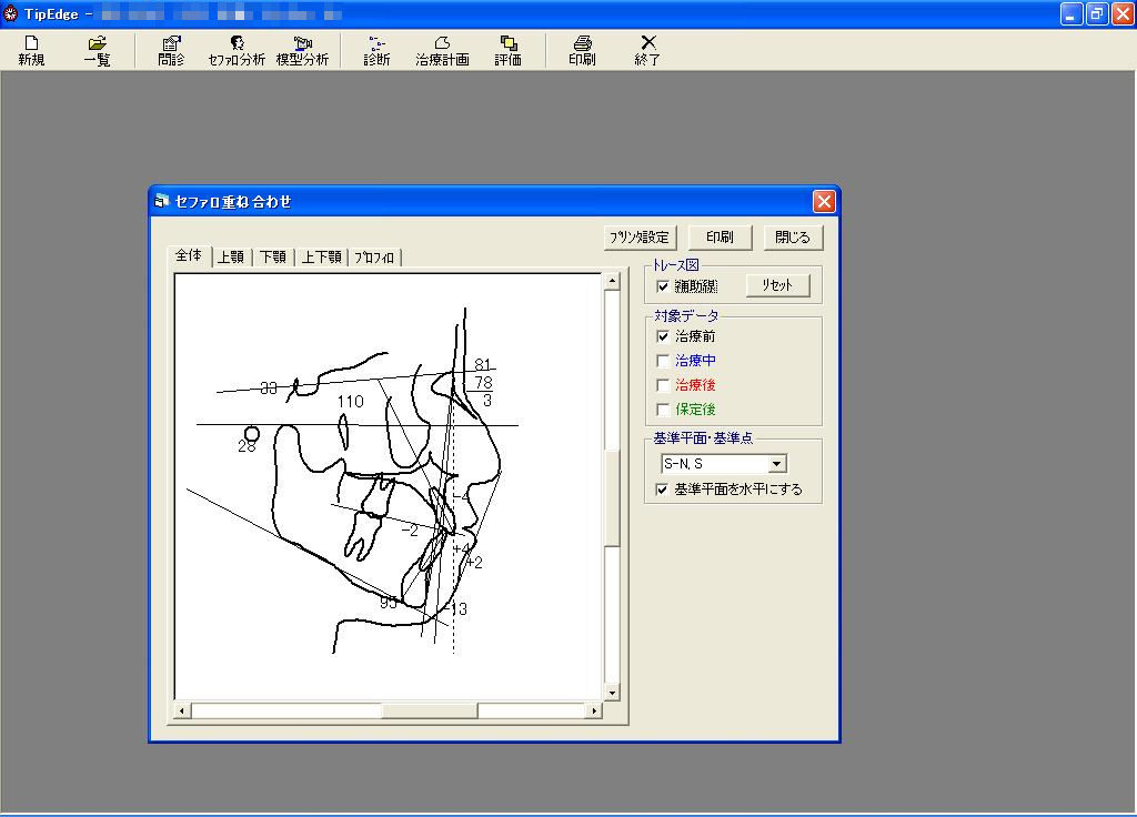 • 治療前から保定後までのセファロの重ね合わせができます。